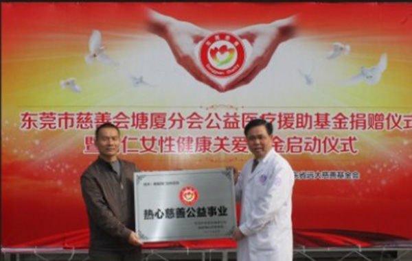 2013年3月18日塘厦镇社会事务局刘副局长颁发荣誉铜牌
