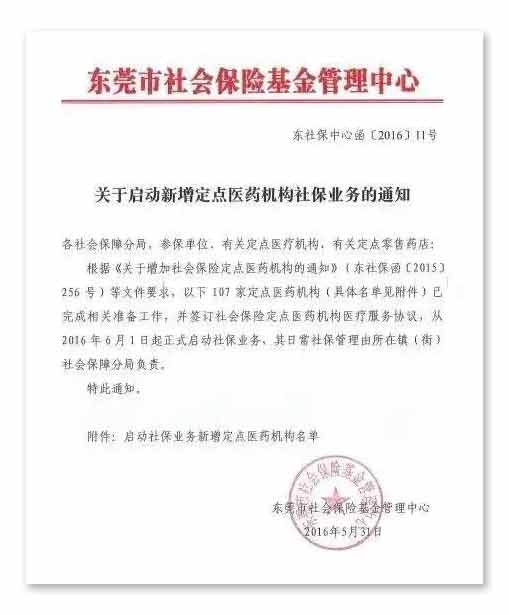 在市医保局的指导和各级卫生部门的支持下,经过前期层层严格评估和审查,本院在医院规模、技术力量、设施设备、管理制度等方面均已达标,具备开通城镇职工和居民医保的资质,也具备了成为生育保险定点医疗机构的条件。自去年底本院被纳入东莞市医保定点单位以来,本院各部门不断推进定点医院工作的顺利开展,加强对各专业科室进行协议、政策与业务操作等方面的培训,努力为今后东莞参保人员来院就诊提供更优质高效的服务。随着医保验收的通过和开启,市民们将在我院享受到更加便利的诊疗服务,并且还可使用东莞市医保卡进行挂号及医疗费用的支付,简化就医程序,减轻就医负担。