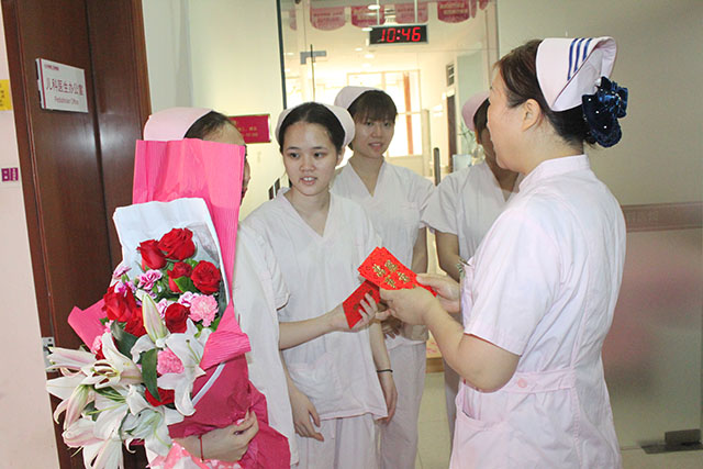 戴剑恩总院长为我院的白衣天使们分别送上鲜花与 “红包”以表示节日的问候和祝福。