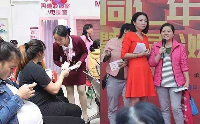 孕妈妈签到领取精美礼包,工作人员耐心为孕妈妈详细介绍各种分娩套餐项目