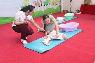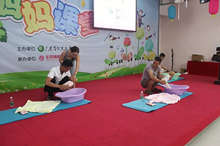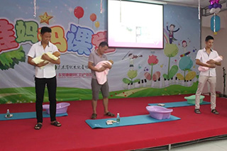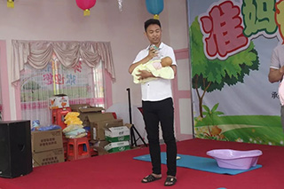 接着,客服中心张雪莲主任在现场为准爸爸们示范如何帮BB换尿布、洗澡、穿衣服,是时候表演真正的技术了~ 现场几位新手爸爸们竞相PK,看今天哪位爸爸最最“爸”气十足,每位爸爸都很棒,给你们的勇气点赞!