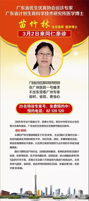 是的,你没听错!!!无数患者翘首以待的终于实现3月2日广东省计划生育科学技术研究所不孕专家苗竹林博士莅临塘厦亲诊啦!