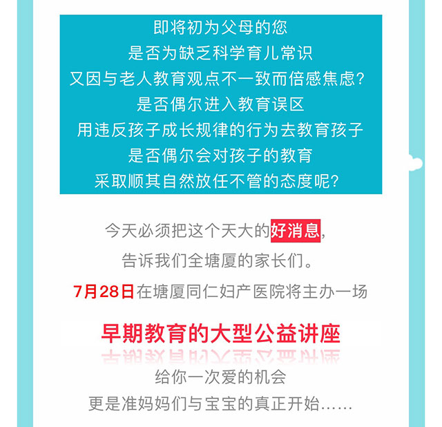 【活动招募】7月28日了解你的宝宝 带娃更轻松——大型亲子讲座开