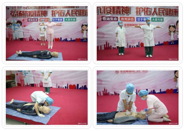 随后在医师节上开展的急救实训竞赛也正式拉开了帷幕,共有6组医师参加竞赛,比赛由总院长郑万华、业务院长张玉英、运营者总监张众峰、护理部主任黄任卿、医务科曾雪苹担任此次评委。