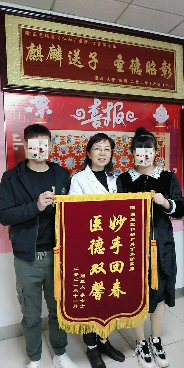 11月底,周女士与李女士为表达感激之情先后为不孕不育科丁素萍主任送来两面锦旗。医治是单向选择,但过程却是相互成就。对患者来说,医生可以竭尽所能为之治愈病痛;对医生来说,患者的选择就是对自己的信赖,对宝仁的信赖,同时每一次的临床经历都将给医生积累成宝贵又丰富的经验。宝宝是医患之间的纽带,那锦旗便是医患培育出的产物,这拉近了她们彼此间的距离。